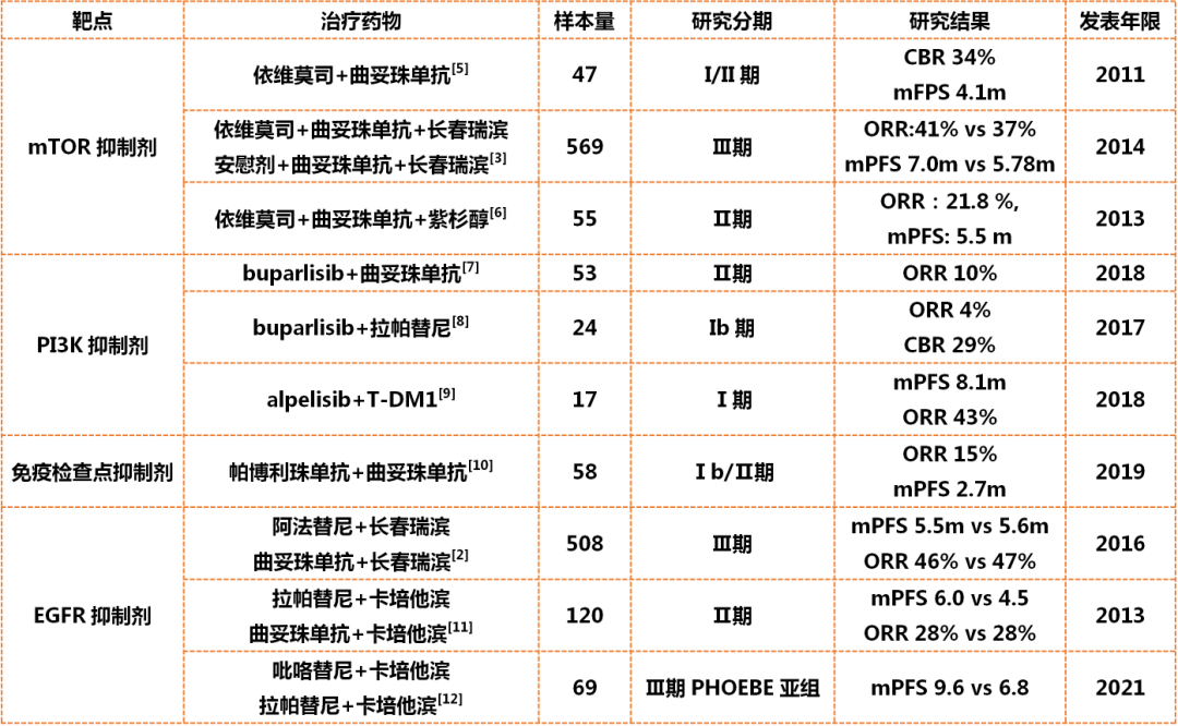 表1:入组包含曲妥珠单抗原发耐药人群的临床研究结果汇总