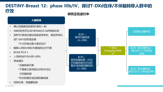 而正在进行的DESTINY-Breast12研究则探讨T-DXd在伴/不伴脑转移人群中的疗效,也让我们更加期待T-Dxd在大样本人群中进一步论证其对乳腺癌脑转移患者的疗效。
