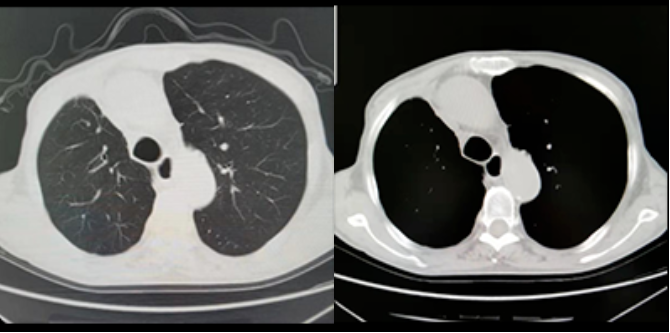2020年7月17日胸部CT:右中肺新发小结节,考虑转移。根据患者意见未行治疗,继续随诊。