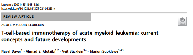 Leukemia综述 | 魏辉教授:基于T细胞的急性髓系白血病免疫治疗:当前概念和未来发展