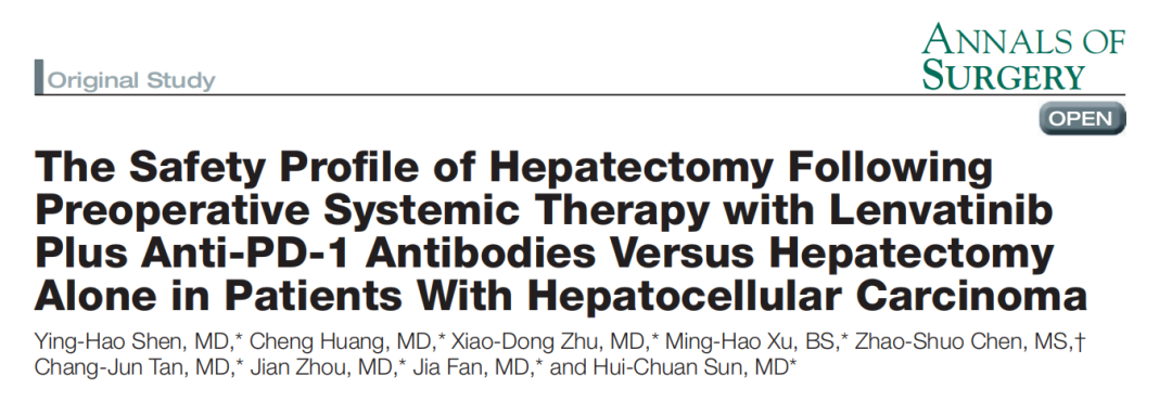 [8] Ying-Hao Shen, et al. The Safety Profile of Hepatectomy Following  Preoperative Systemic Therapy with Lenvatinib  Plus Anti-PD-1 Antibodies Versus Hepatectomy Alone in Patients With Hepatocellular Carcinom. Annals of Surgery Open: June 2022- Volume 3 - Issue 2 - p e163 . doi: 10.1097/AS9.0000000000000163
