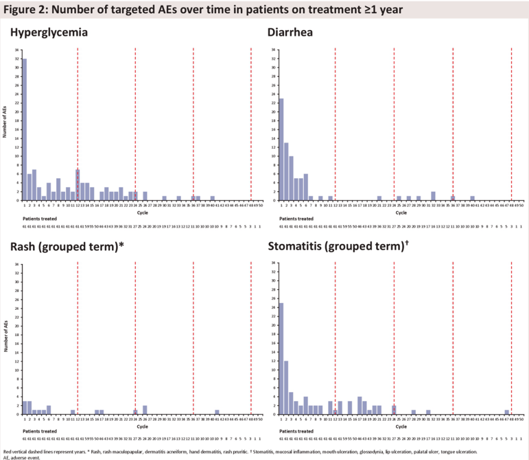 AEs通常发生在前6个月,而在随后的治疗周期中逐渐减少。长期使用Inavolisib未观察到新的安全事件。