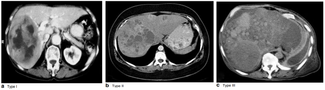 • 弥漫型(Ⅲ型):为两叶弥漫分布的转移瘤,通常无法手术干预,约占60%~70%。