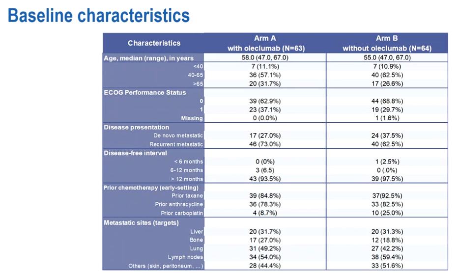SYNERGY是一项随机、多中心、开放Ⅱ期临床研究,探索了度伐利尤单抗(Durvalumab)+紫杉醇+卡铂±抗-CD73单克隆抗体Oleclumab在晚期三阴性乳腺癌(TNBC)一线化疗联合免疫治疗的疗效与安全性。