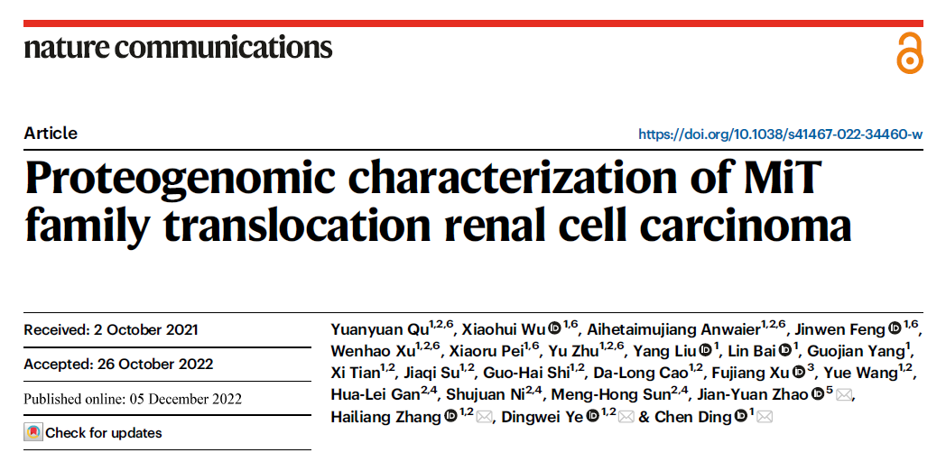 瞭望东方丨复旦肿瘤叶定伟团队携手复旦大学丁琛团队、上海交通大学赵健元团队在Mit家族易位肾癌蛋白质组领域取得突破