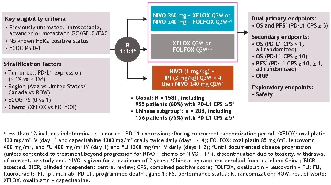 CheckMate 649(NCT02872116)是一项随机、开放标签、全球Ⅲ期研究。研究设计见图1。