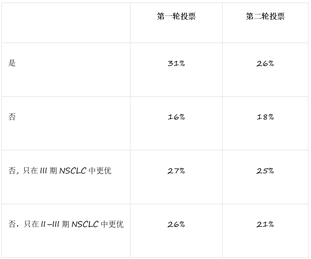 投票结果:对于所有分期的早期NSCLC,新辅助化疗/免疫是否优于辅助化疗/免疫治疗?