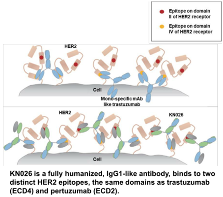 Jifang Gong,et al.Efficacy and safety of KN026 in combination with KN046 in patients with locally advanced unresectable or metastatic HER2-positive other solid tumors.Presented at:2023 ASCO Annual Meeting,June 2-7,2023.Abstract 3621.