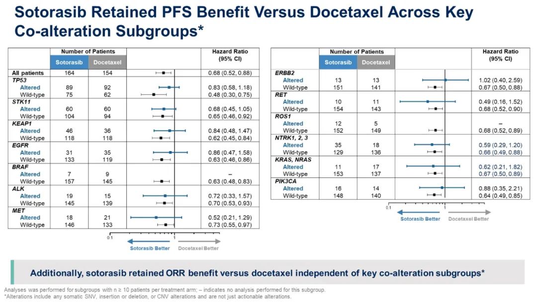 CodeBreaK 200生物标志物分析:sotorasib的临床获益在各亚组一致(摘要9008)