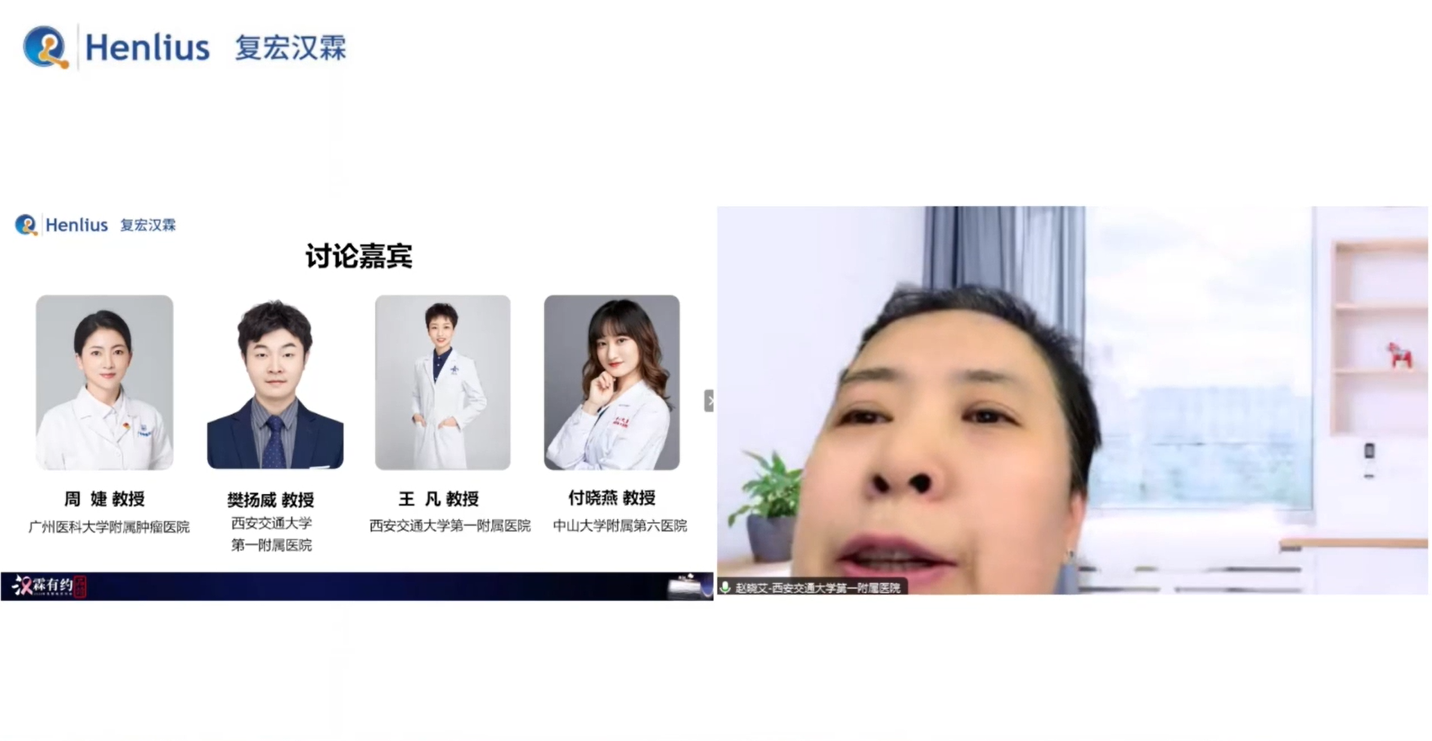 在西安交通大学第一附属医院赵晓艾教授的主持下,广州医科大学附属肿瘤医院周婕教授、西安交通大学第一附属医院樊扬威教授、西安交通大学第一附属医院王凡教授、中山大学附属第六医院付晓燕教授就TKI抗HER2治疗展开了深入讨论。