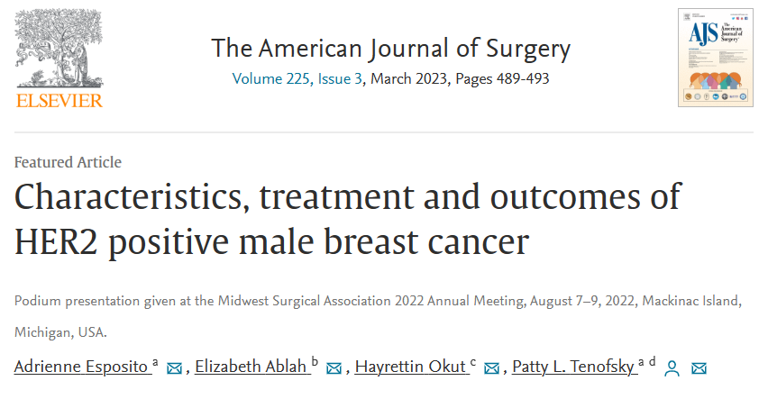 编者按:目前对HER2阳性乳腺癌的女性患者研究较多,但HER2过表达的男性乳腺癌研究较少。这项研究对SEER Research Plus数据库进行分析,总结了男性HER2阳性乳腺癌相关数据。研究结果表明,相比于HER2阴性,男性HER2阳性乳腺癌确诊时更年轻、低分化癌症更多、肿瘤体积更大、远处转移和/或对侧淋巴结受累更多、癌症相关死亡率更高,并且总生存期更短。