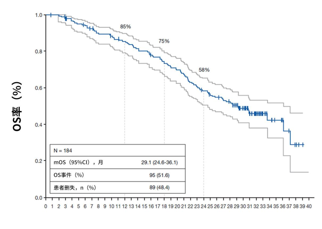 图3 DESTINY-Breast01研究T-DXd在HER2阳性乳腺癌队列的OS
