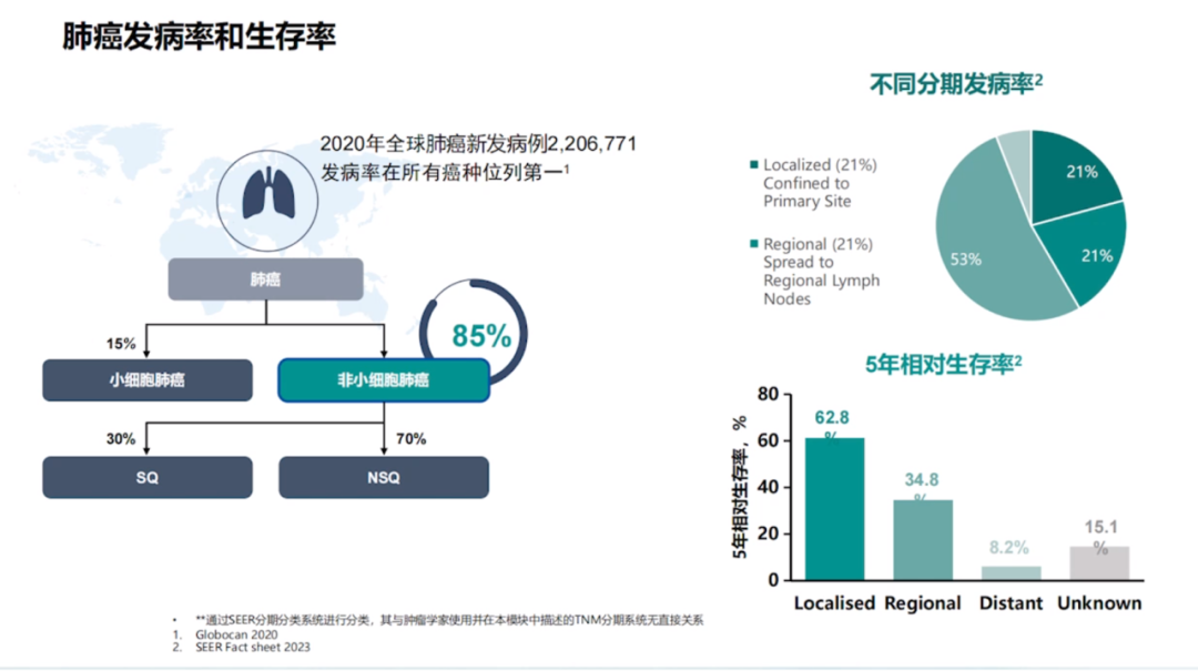 长久以来,肺癌一度是全球发病率居首的癌种,其中非小细胞肺癌(NSCLC)约占85%,小细胞肺癌约占15%[1]。其中超过半数患者发现即为晚期,五年生存率不足10%[2]。