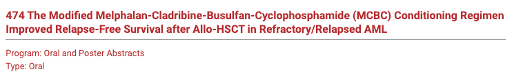 本研究证实了MCBC预处理方案在R/R AML中具有优异的抗白血病能力和良好的安全性。
