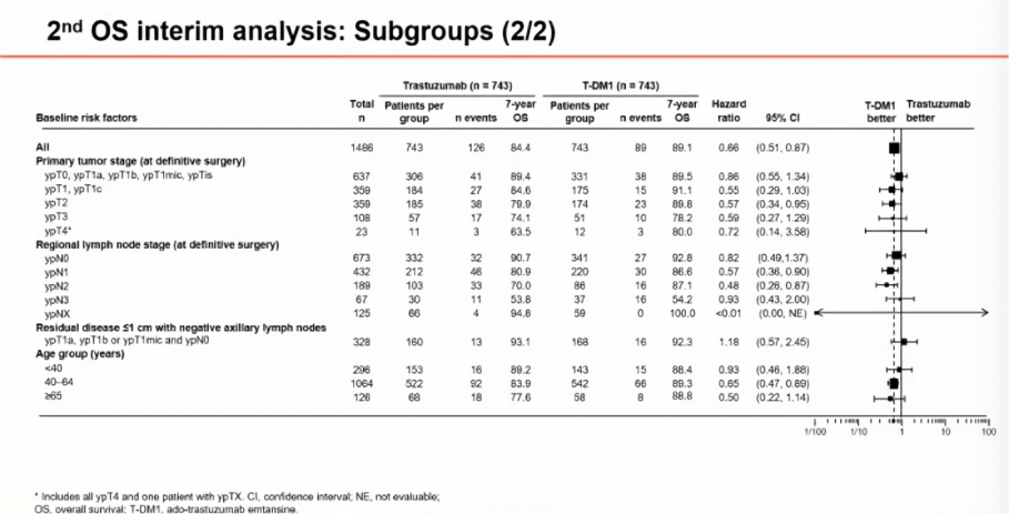 肿瘤瞭望:亚组分析显示,总体上无论non-pCR患者原发性肿瘤分期、HER2表达状态、患者年龄与族裔、术后腋结状态,均可从T-DM1辅助治疗中获益。您如何看待这一结果?