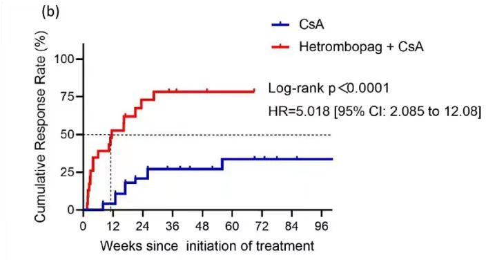 海曲泊帕联合CsA可提高TD-NSAA患者血液学反应的比率、速度和强度,并降低向SAA转化的风险。