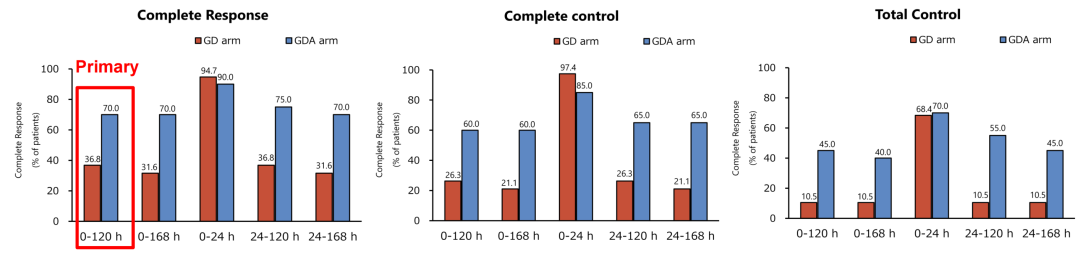 △日本II期研究的主要终点(120h内的CR率)和次要终点结果