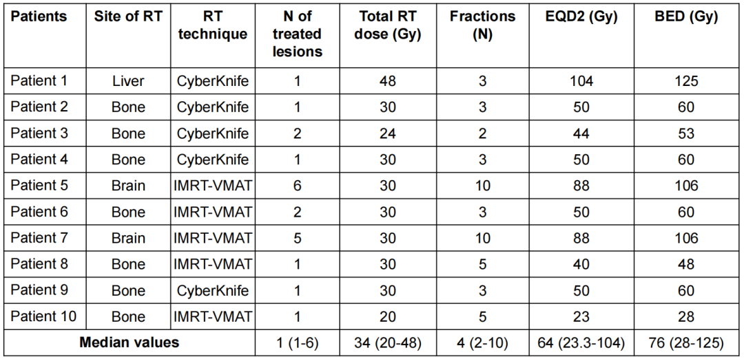 △意大利10例联合T-DXd治疗患者的放疗剂量和分割