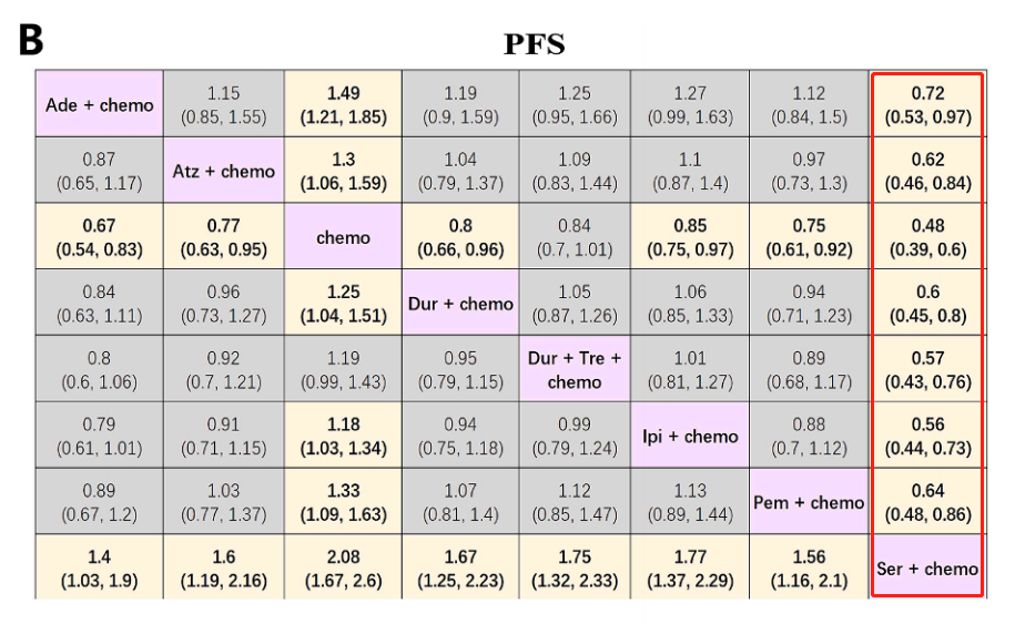 网状Meta分析可以助力研究者对不同干预措施进行量化比较,并按照某一结果指标效果好坏进行排序,进而为患者优化治疗方案。在ES-SCLC免疫治疗药物选择方面,2023年公布的4项Meta分析结果将进一步明确临床选择。