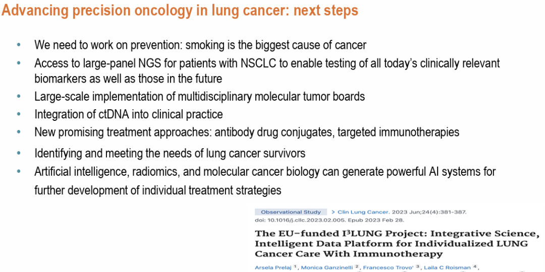 Dr.Felip强调以多学科模式推进肺癌精准肿瘤学进展,具体而言,患者应由多学科团队进行评估;早期NSCLC需要进行生物标志物检测;下一步是实施ctDNA检测。