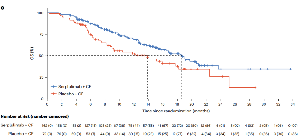 该研究探索了斯鲁利单抗对比安慰剂联合化疗1L治疗PD-L1阳性的局晚/复发或转移性ESCC的疗效。结果显示,斯鲁利单抗联合化疗组由的中位PFS和OS较对照组均有延长,CPS≥10人群获益更为显著。总人群中,中位OS为15.3 vs.11.8个月,死亡风险降低32%(HR=0.68,P=0.0020),其中位PFS为5.8 vs.5.3个月,疾病进展风险降低40%(HR=0.60,P<0.0001)。CPS≥10人群中,斯鲁利单抗联合化疗组中位OS长达18.6个月,较对照组绝对延长4.7个月,死亡风险降低41%(HR=0.59,P=0.0082);中位PFS达7.1个月(对照组5.3个月),疾病进展风险降低52%(HR=0.48,P<0.0001),未出现显得安全信号。该研究成功为局部晚期/转移性、PD-L1阳性(CPS≥1)ESCC患者的一线治疗提供了更多中国数据,更为打造更适合中国患者的临床实践方案作出了突出贡献,被评为“重要研究”。